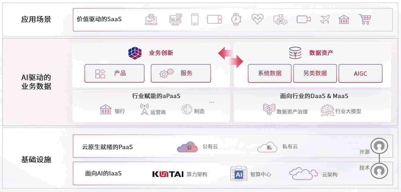 数字时代,,,围绕企业数字化转型的关键要素,,,IM电竞数码开创性的提出数云融合战略和技术体系框架,,着力在云原生、、数字原生、、AI原生和信创产业上架构产品和服务能力,,,为处在不同数字化转型阶段的快消零售、、汽车、、、、金融、、、医疗、、、、政企、、、、教育、、、运营商等行业客户提供泛在的敏捷IT能力和融合的数据驱动能力,,构建跨界融合创新的数字业务场景和新业务模式,,助力企业级客户建立面向未来的核心能力和竞争优势,,,,全面推动社会的数字化、、、、智能化转型升级。。